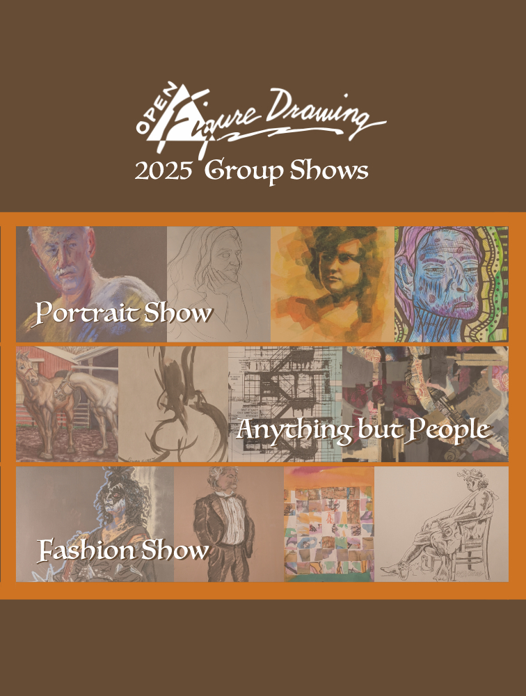 The 2025 Group Shows Catalog contains artwork from 3 different shows, Portrait Show, Anything but People, and Fashion Show. It contains 97 artwork submissions by 33 artists. It is one of our largest catalogs: 11 x 8.5 ” and 72 pages.