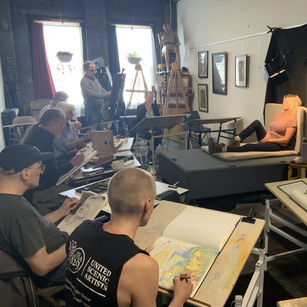 Long Pose drawing sessions consist of 1 pose, with breaks for the model, for the entire 2 hr session. Long Pose (clothed) sessions are usually on the 2nd Sunday of the month, & Long Pose (nude) sessions are usually on the 3rd Sunday of the month. Check our calendar for the exact date each month.